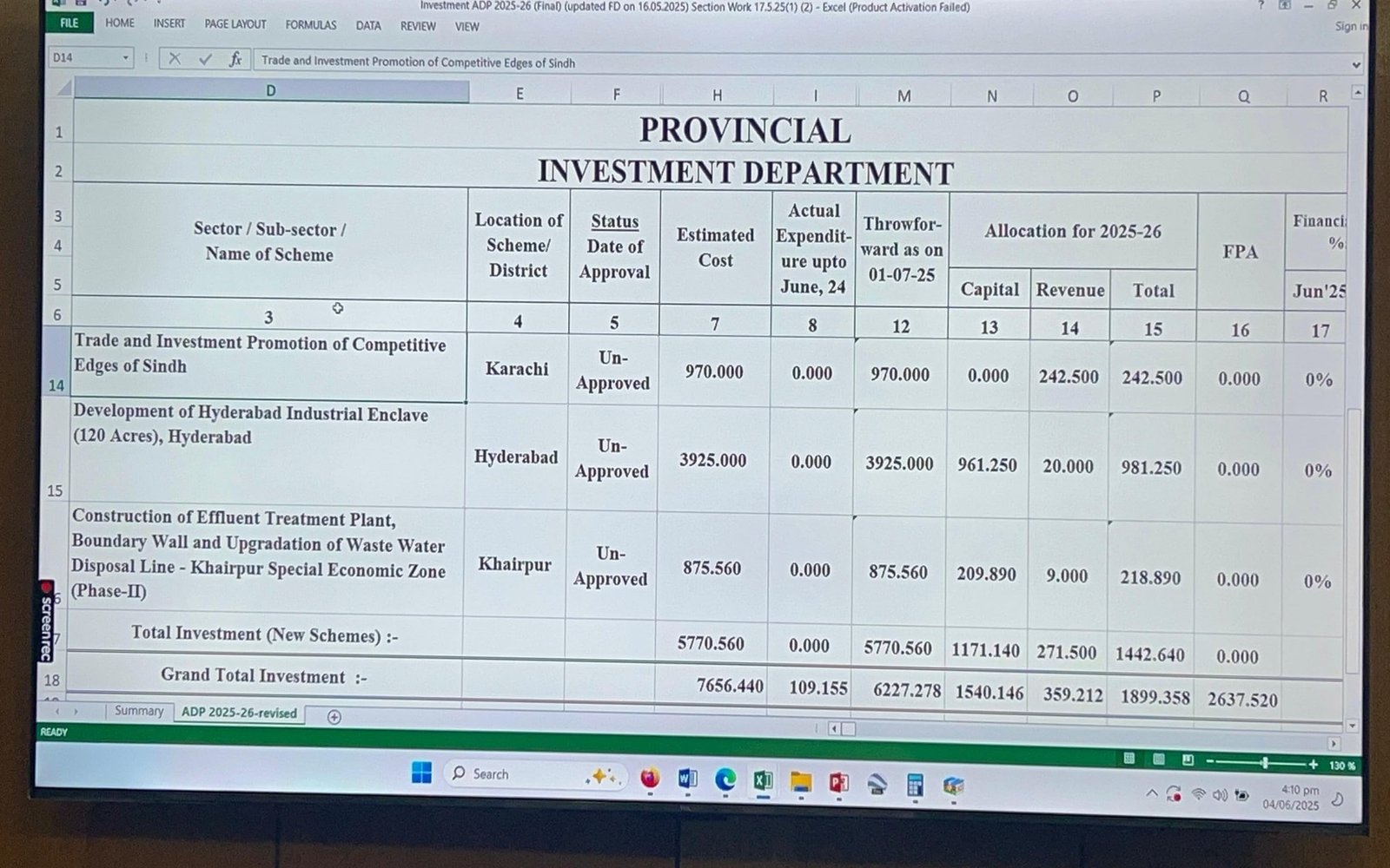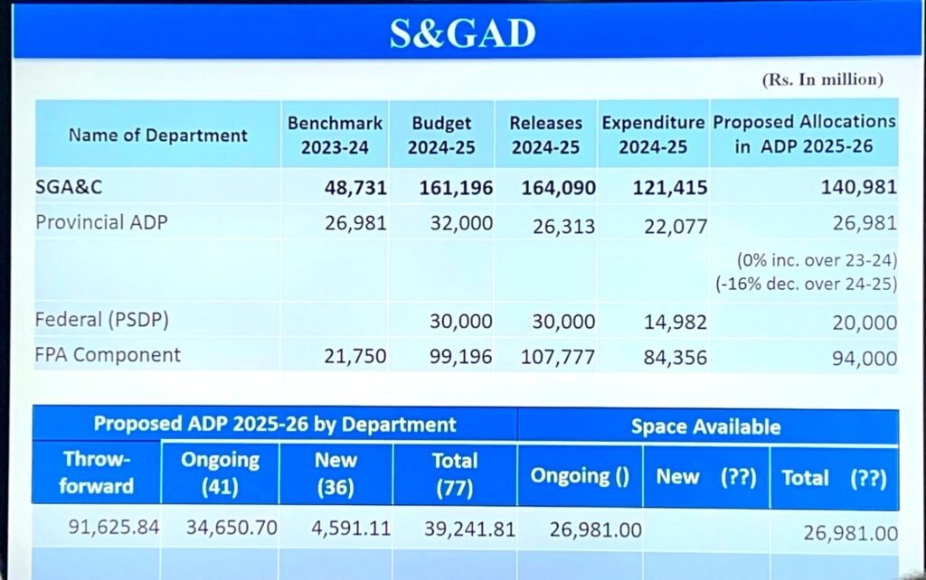 وزیر ترقیات و منصوبہ بندی کی زیر صدارت اجلاس میں صوبہ کے 10 محکموں کی 1168 اسکیموں کیلئے 160 ارب روپے مختص کرنے کی تجویز