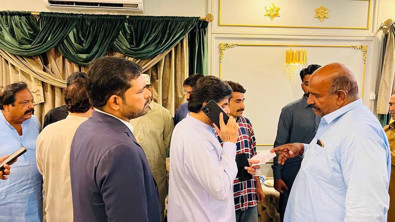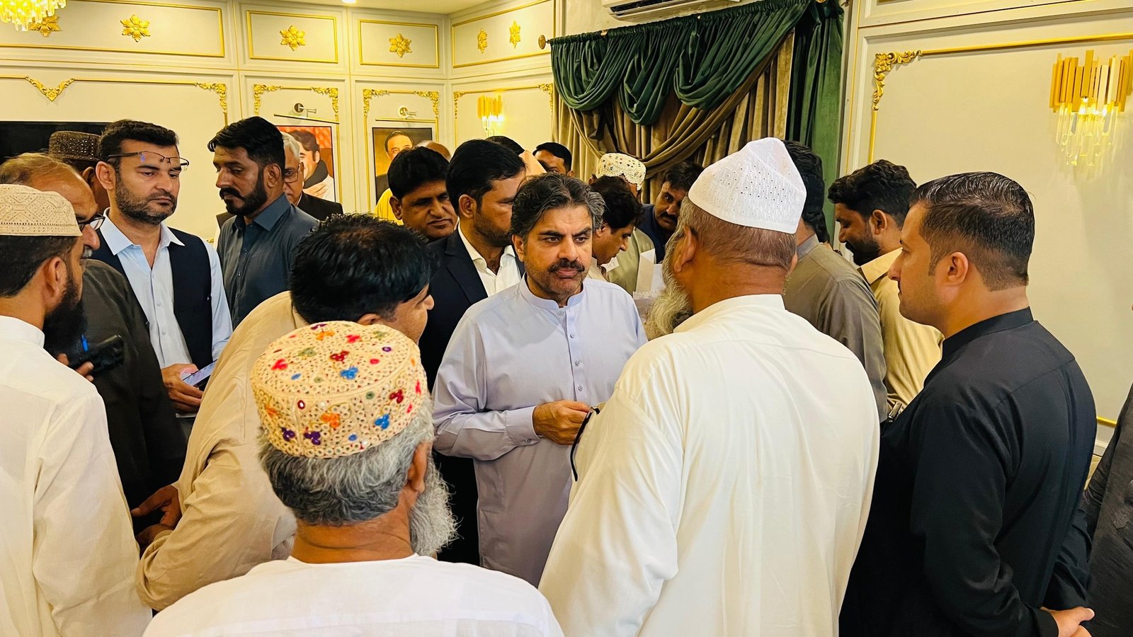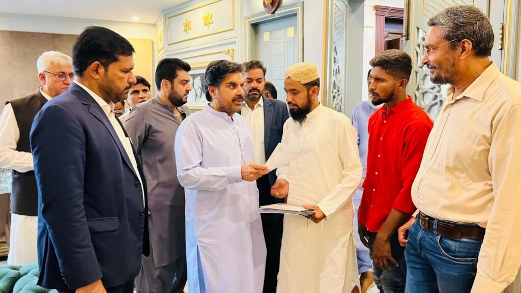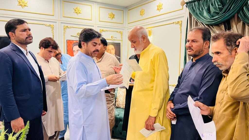 سائیں سید ناصر حسین شاہ علی ہائوس پر آئے ہوئے لوگوں کے مسائل سن کر حل کرنے کے احکامات جاری کرتے ہوئے۔۔