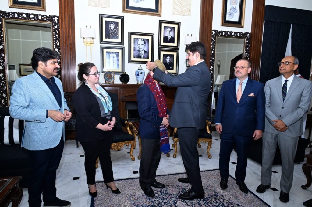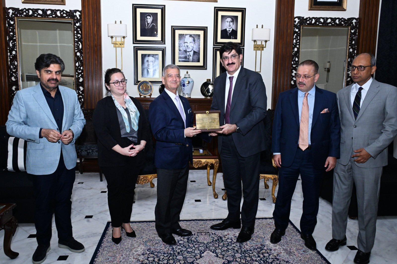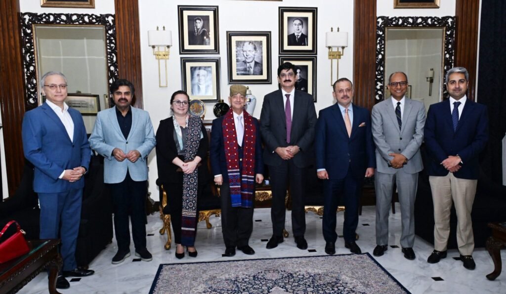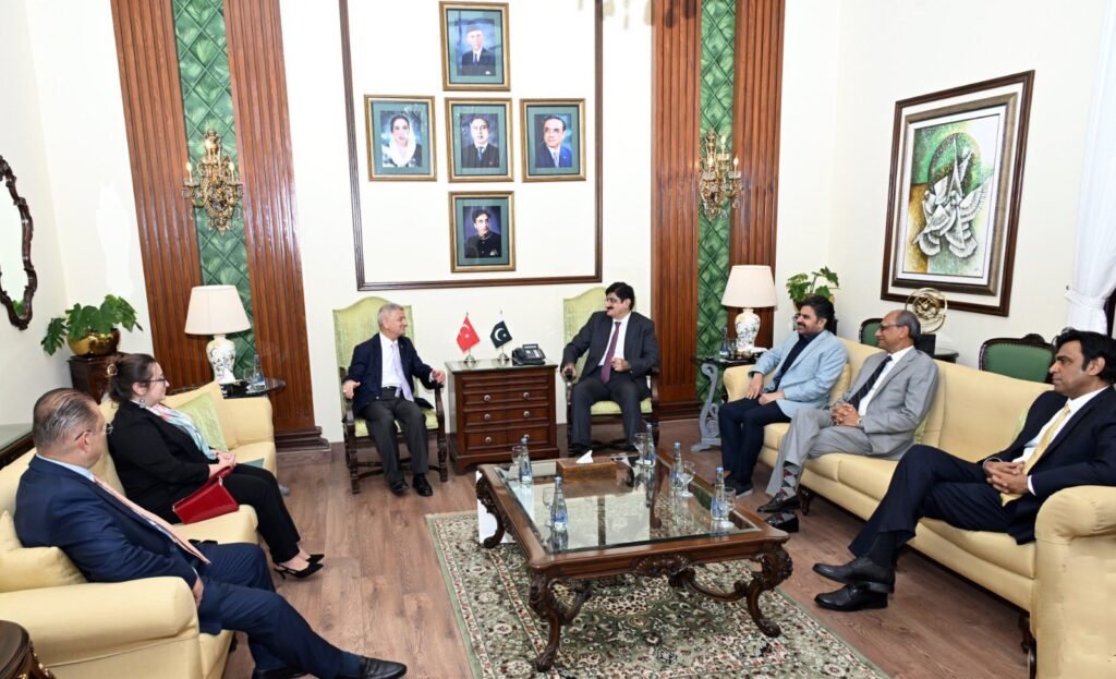 کراچی: وزیراعلیٰ سندھ سید مراد علی شاہ اور صوبائی وزراء سے ترکی کے قونصل جنرل ڈاکٹر جمل سانگو کی الوداعی ملاقات۔