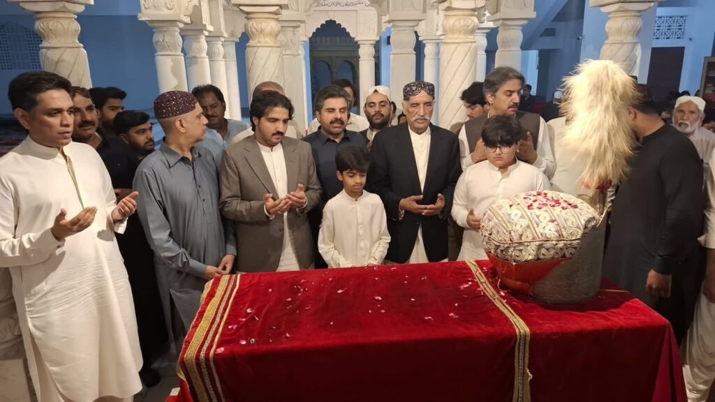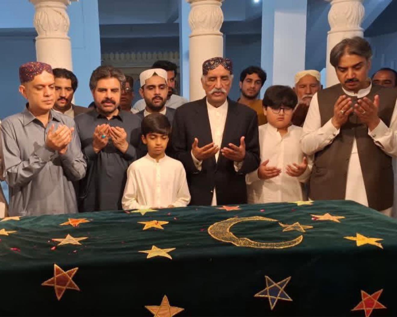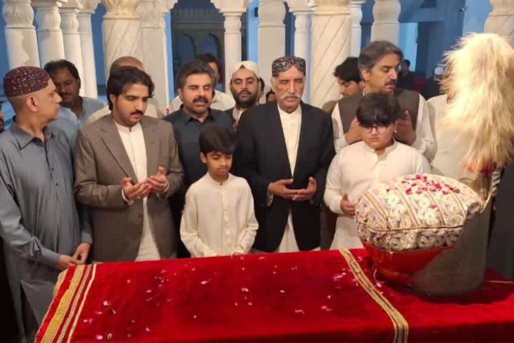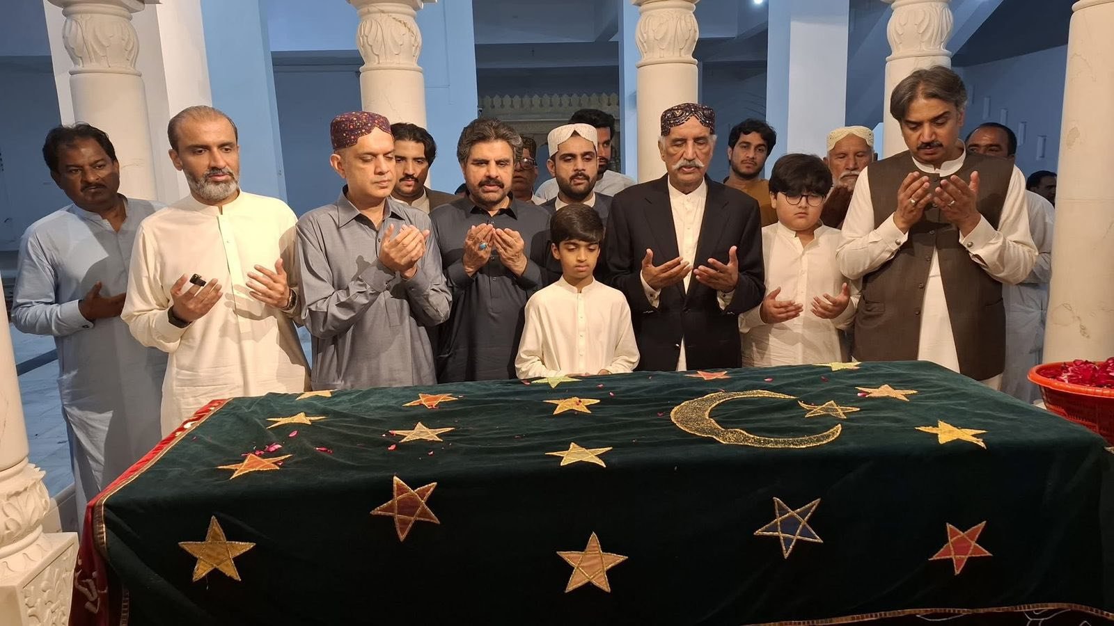 لاڑکانہ: پیپلزپارٹی کے مرکزی رہنماء سید خورشید احمد شاہ، وزیر بلدیات سندھ سید ناصر حسین شاہ، اسپیکر سندھ اسمبلی سید اویس قادر شاہ، ممبر قومی اسمبلی نعمان اسلام شیخ، چیئرمین ڈسٹرکٹ کونسل سکھر سید کمیل حیدر شاہ، سید فرخ شاہ اور دیگر نے عید کے پہلے روز شہدائے جمہوریت کے مزار پر حاضری۔