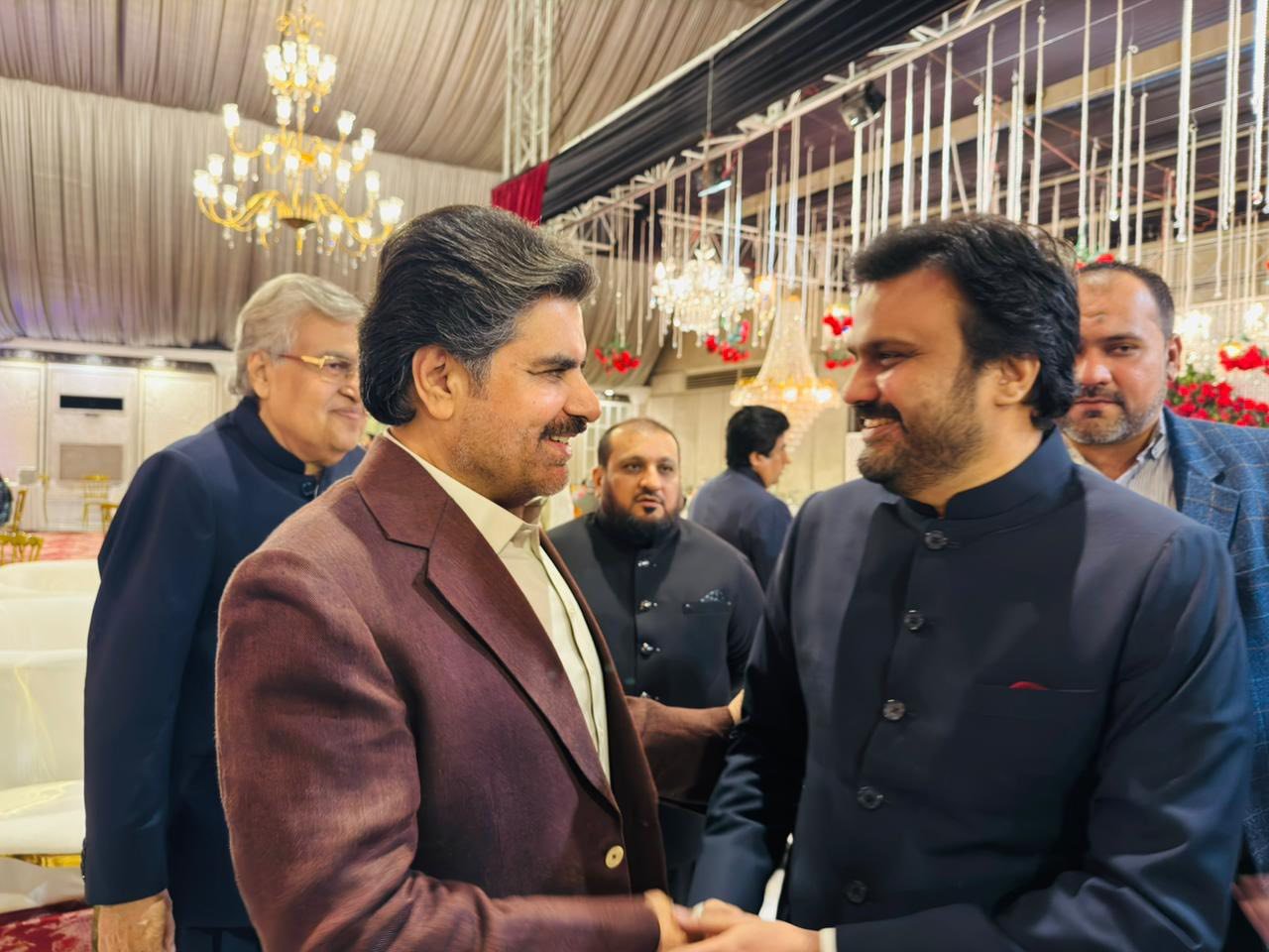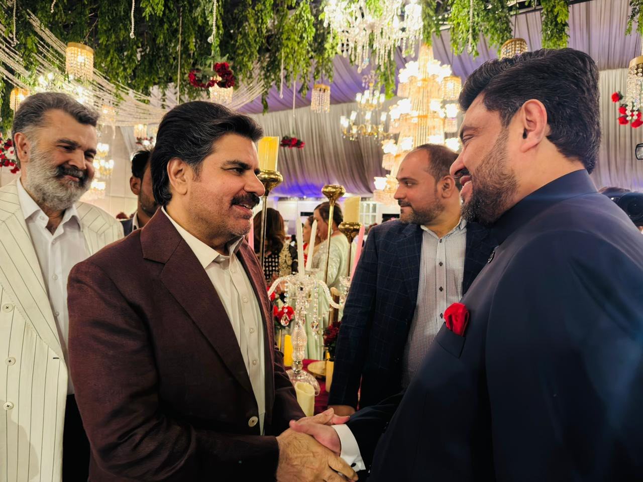 وزیر بلدیات سندھ سید ناصر حسین شاہ نے سابق گورنر کامران ٹیسوری کی بھانجی اور معروف شخصیت یوسف صدیقی کی بیٹی کی شادی کی تقریب میں شرکت فرمائی۔ سید ناصر حسین شاہ نے یوسف صدیقی کو بیٹی کی شادی کے موقع پر مبارک باد دی اور نئے جوڑوں کے لیے نیک تمناؤں کا اظہار کیا۔۔