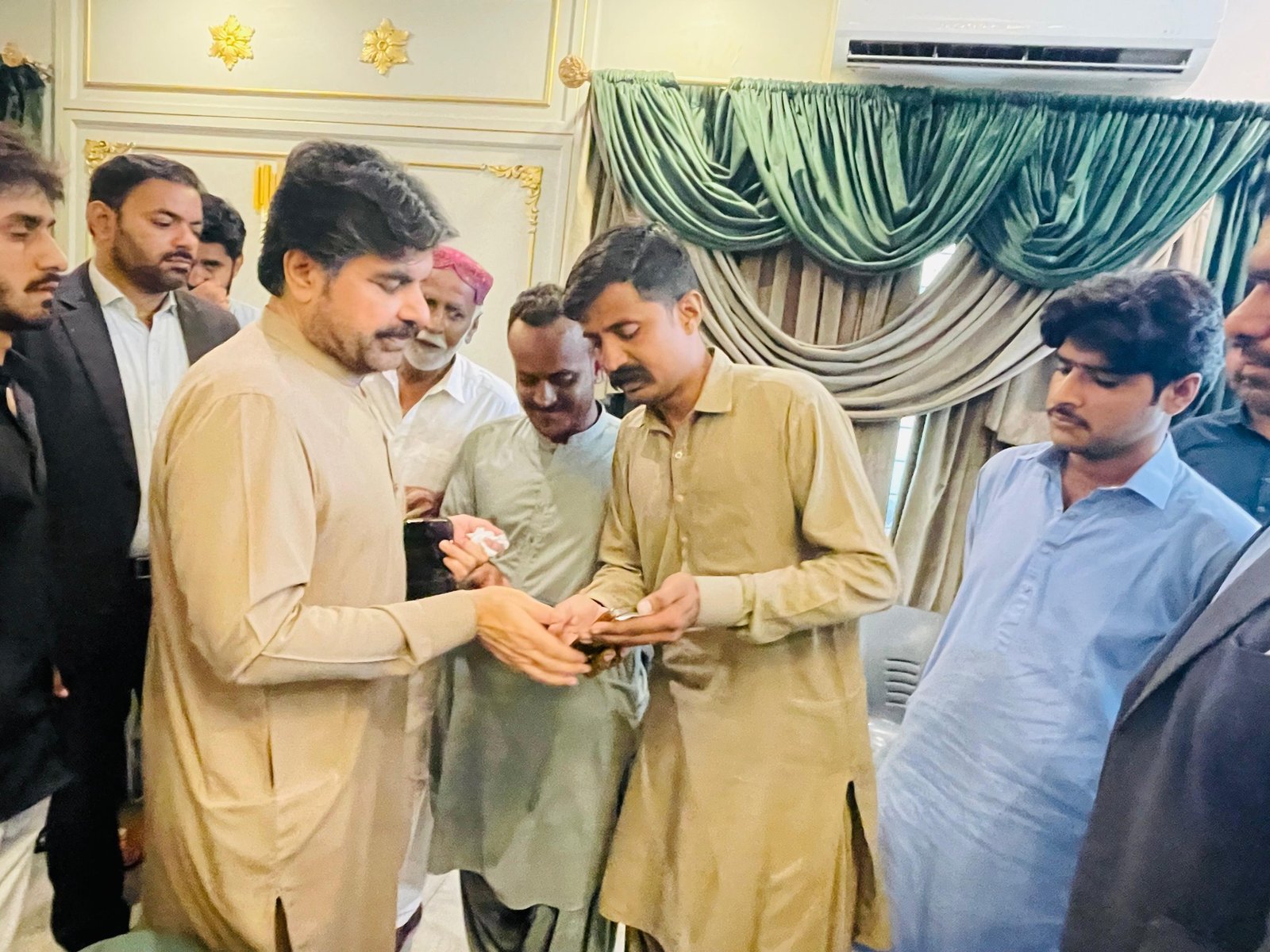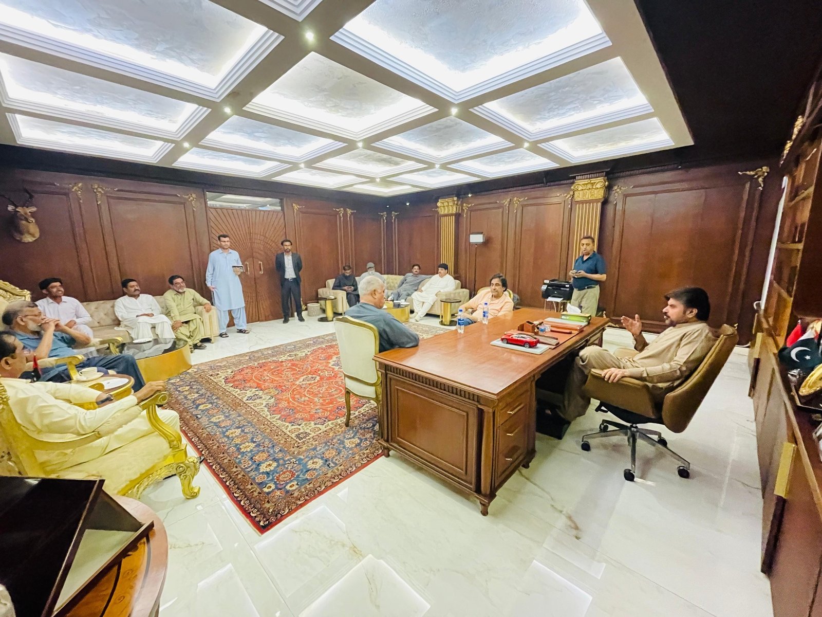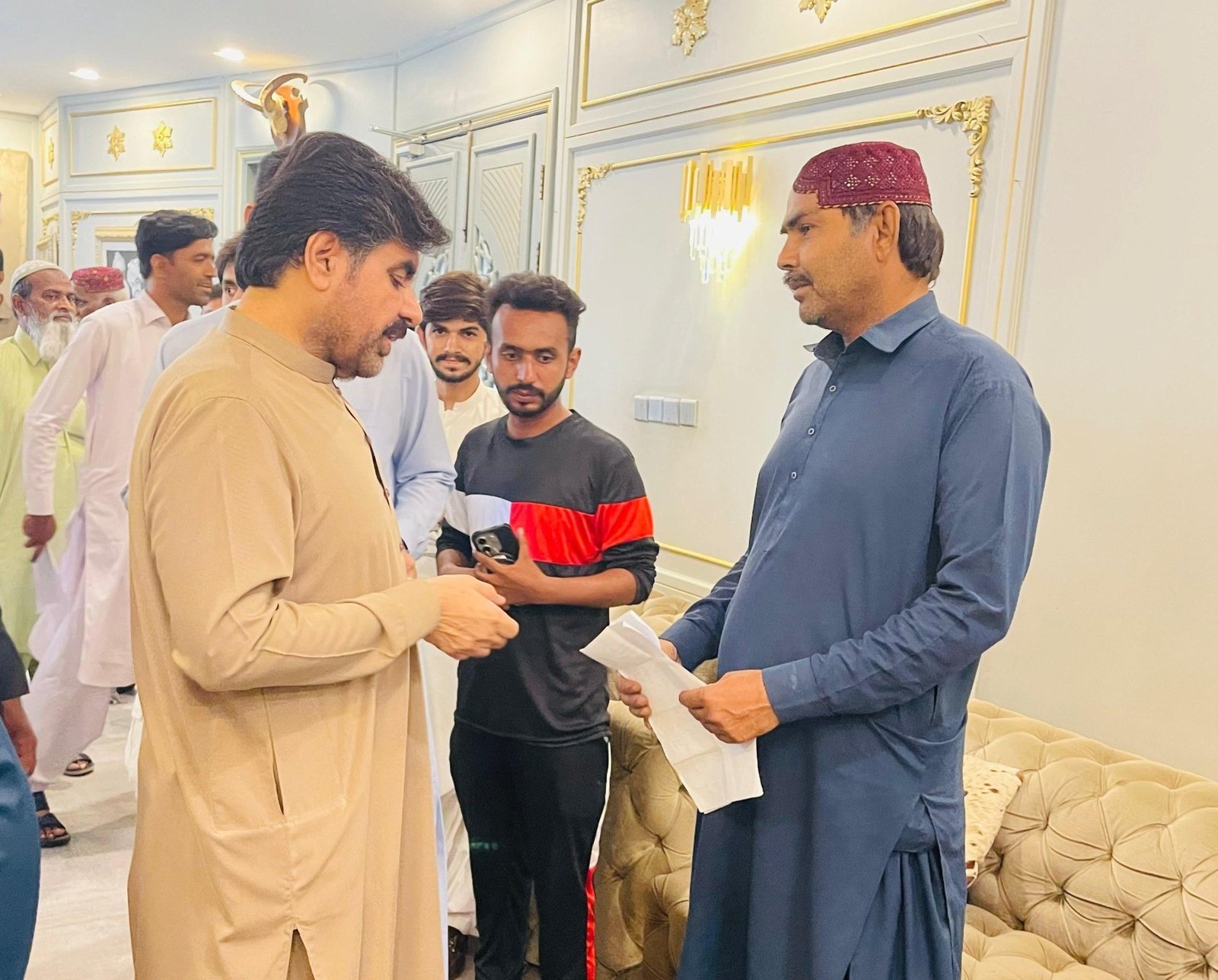 سائیں سید ناصر حسین شاہ علی ہائوس پر آئے ہوئے لوگوں کے مسائل سن کر حل کرنے کے احکامات جاری کرتے ہوئے۔۔