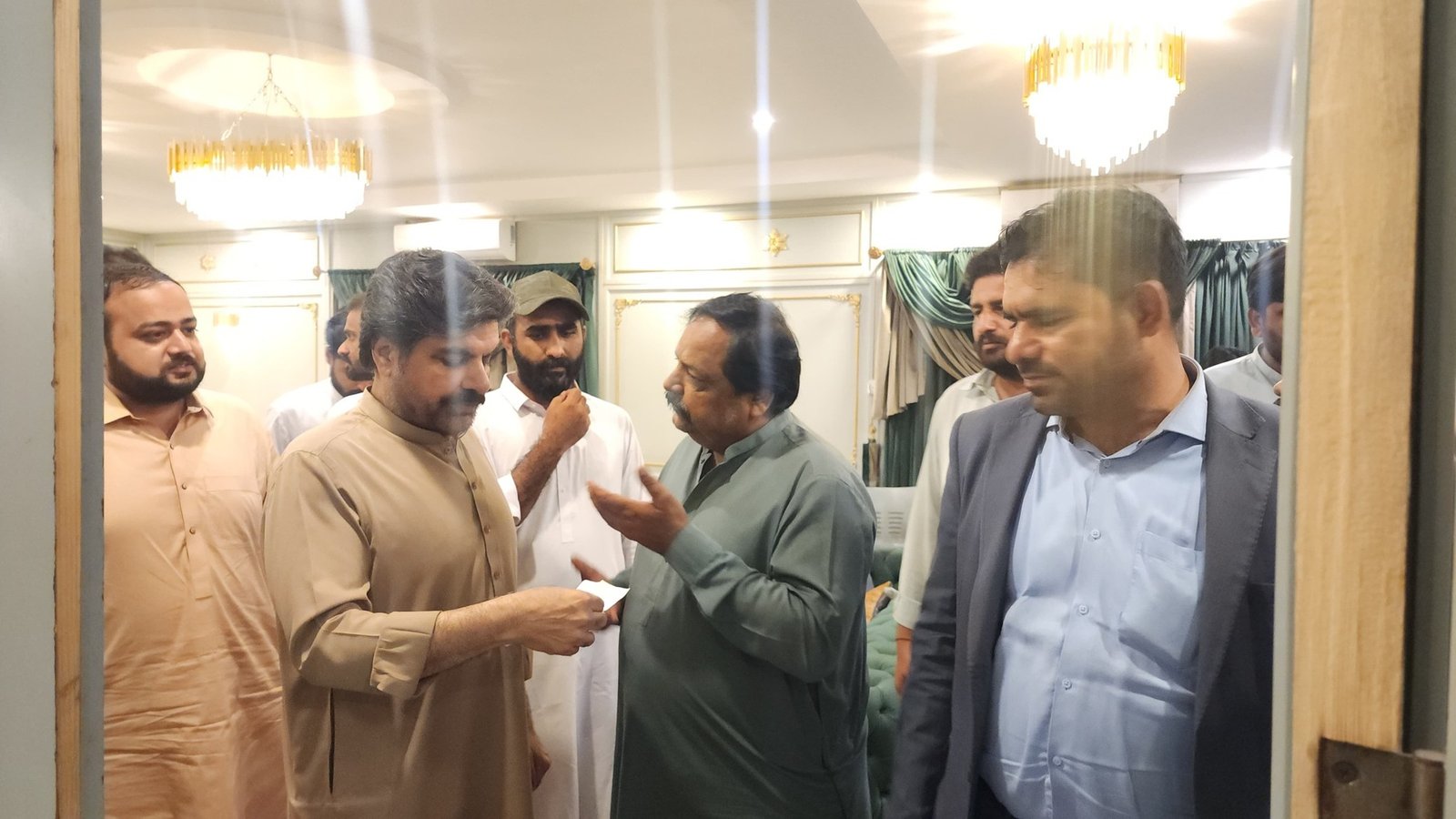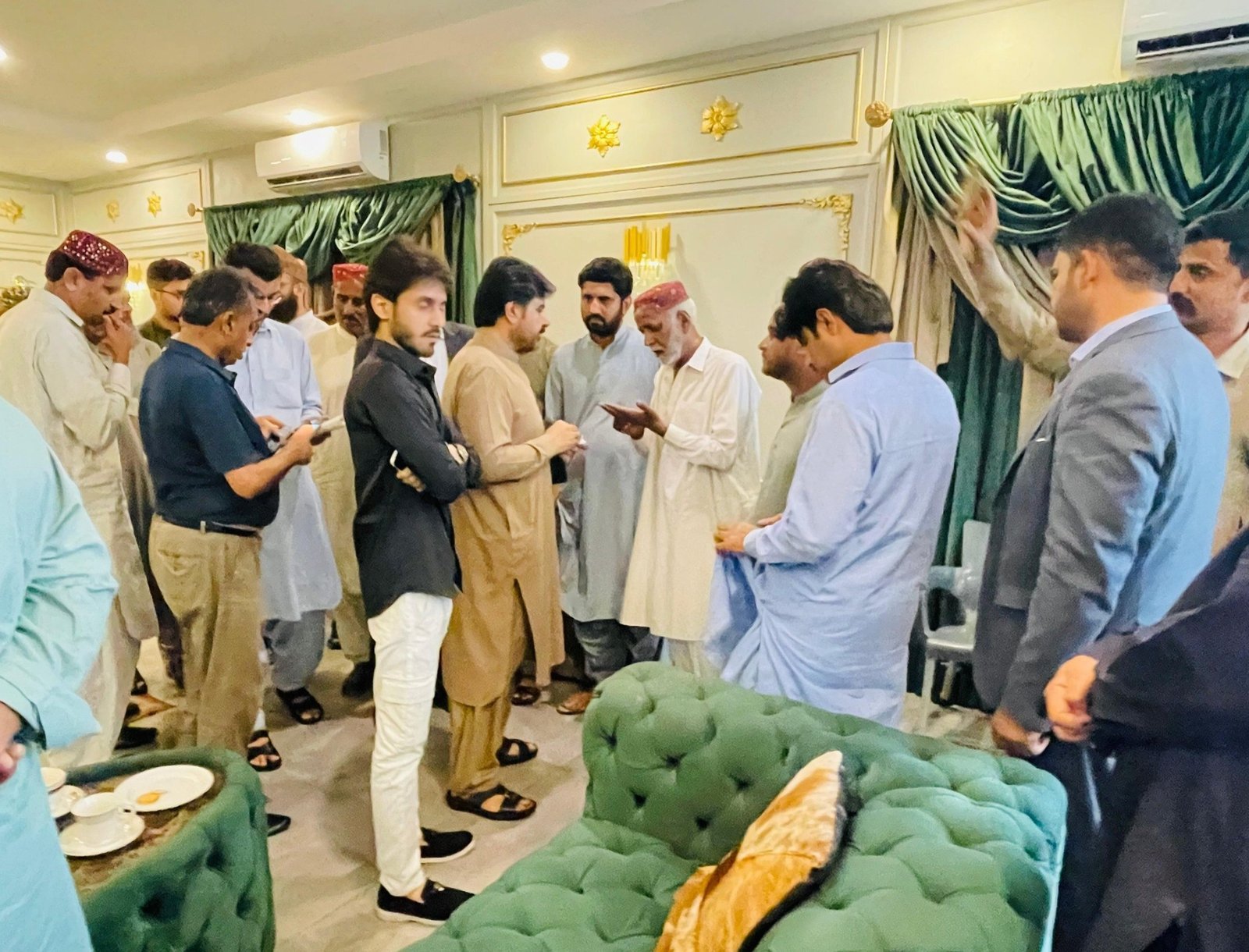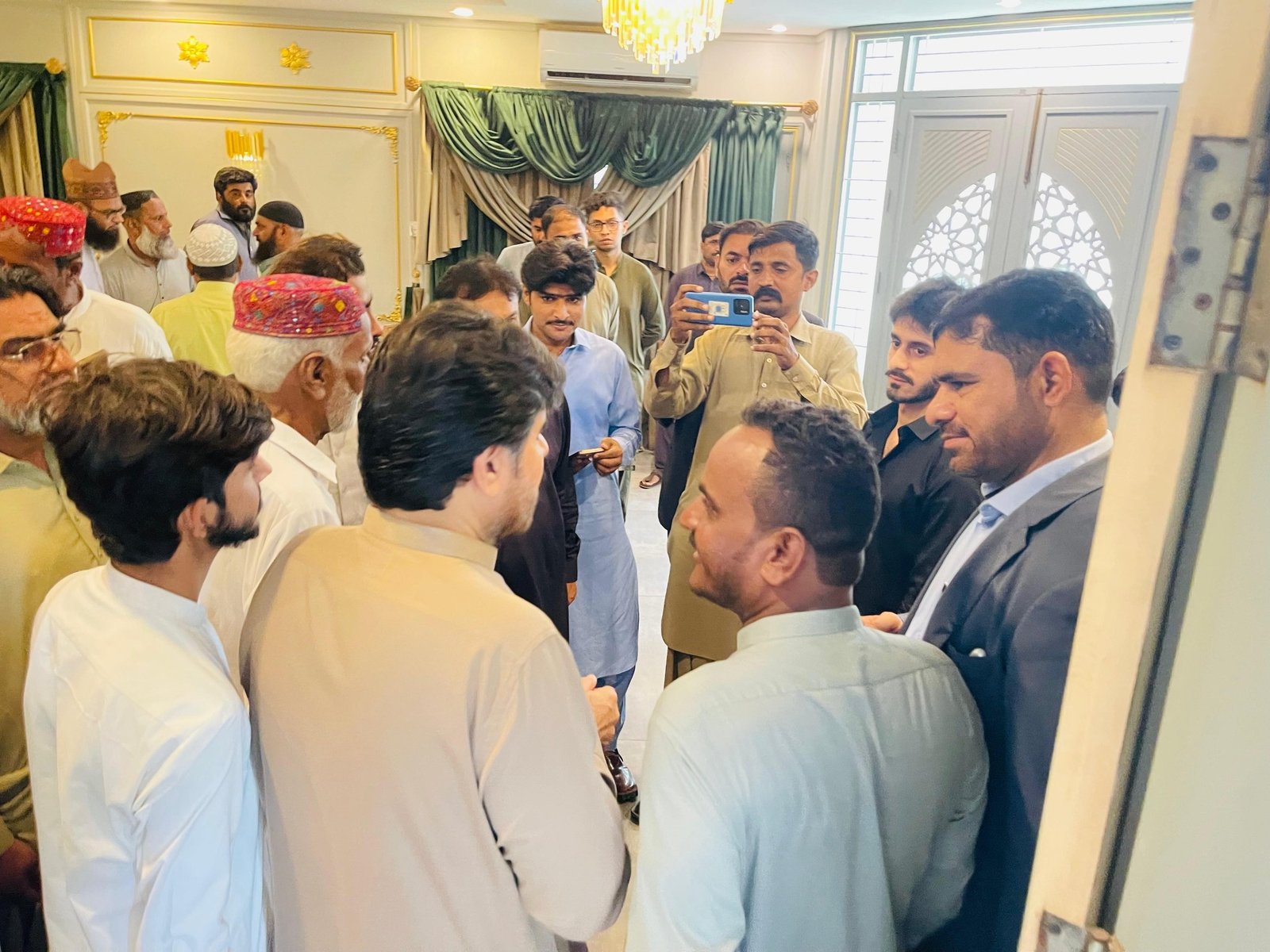 سائیں سید ناصر حسین شاہ علی ہائوس پر آئے ہوئے لوگوں کے مسائل سن کر حل کرنے کے احکامات جاری کرتے ہوئے۔۔